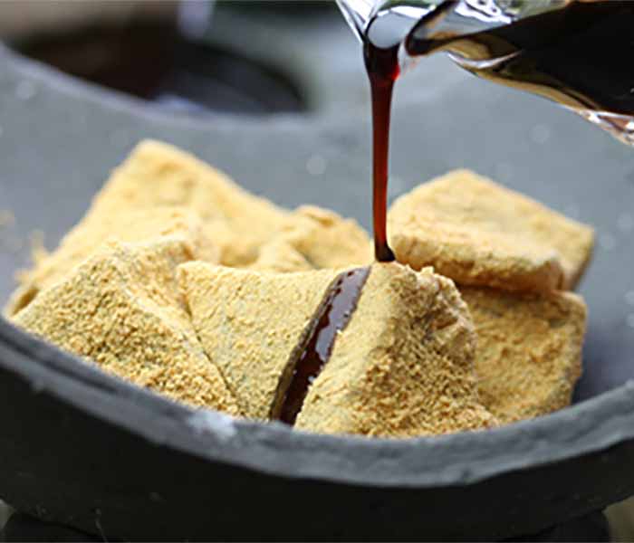 「枯淡の味」とはさっぱりとした淡白な味わいの中にも高雅な風味となめらかな舌触りを醸し出すものといえます。本多屋さんは自家製餡で小豆や砂糖など他の材料にもこだわり、わらび粉の本来持つもっちりとした性質を生かしながら現代人の味覚に合わせて作られています。