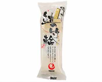 蒸気で蒸しあげ、新鮮な白身魚の淡くふっくらとした甘味を引き出した、麦わら巻きが目印の宇部かまの代表的な蒸しかまぼこです。 |