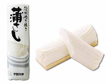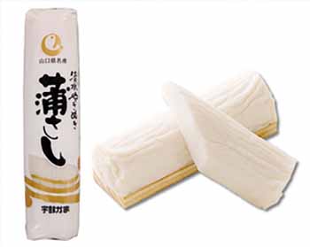宇部かま特製 削りかまぼこ『うす羽蒲鉾 海の華』新登場 高級な鱈のすり身のみを素材にした蒲鉾を、独自の製法で薄くスライスしました。 でんぷん及び保存料は一切使用しておりません。 魚本来の旨味とふわりとした食感をお楽しみください。 |