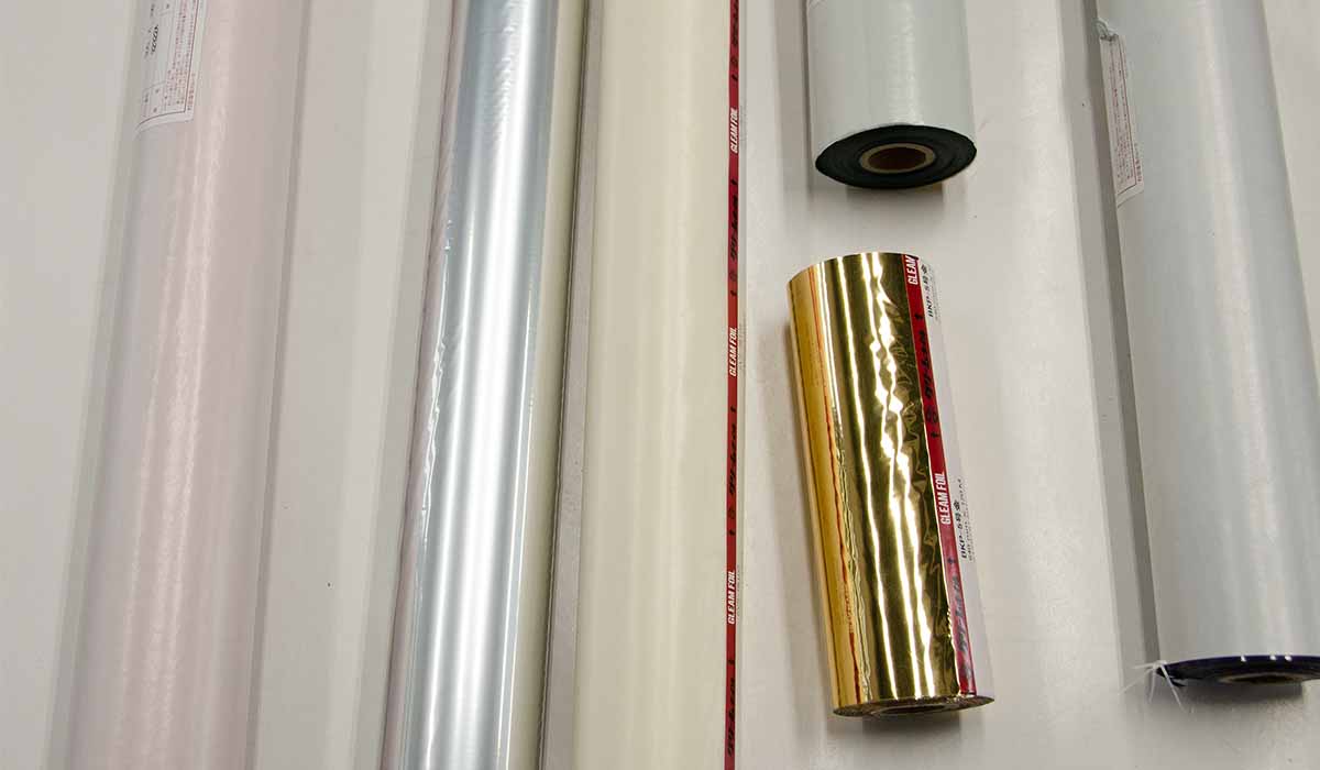 箔を押す位置は下の紙に貼ったテープで合わせます。